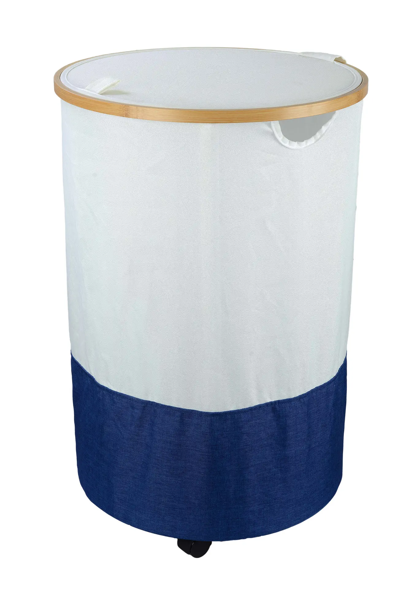סל כביסה מתקפל עם גלגלים 100 ל' עגול לבן/כחול SPACE