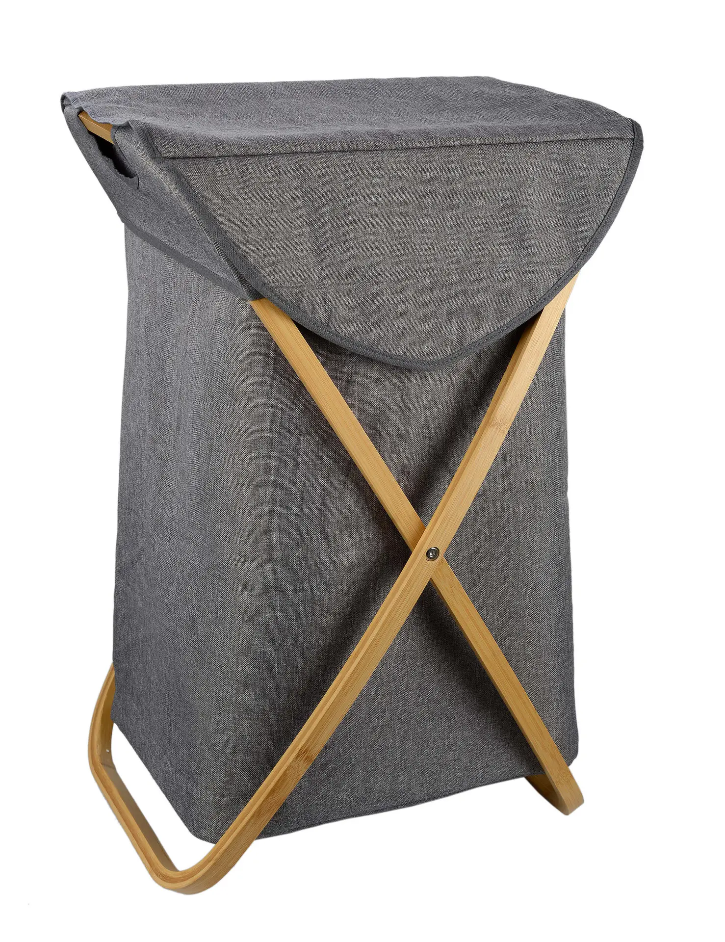 סל כביסה מתקפל 60 ל' מרובע במבוק אפור SPACE